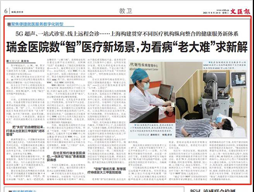 医生在位于市中心的瑞金医院总院,患者则在位于嘉定的瑞金医院北部院区,借助5G超声,实现“隔空”实时超声探查检查……